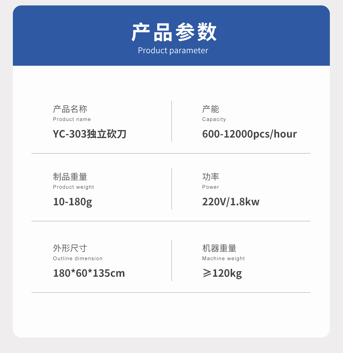 制品重量 | 10-180g | 功率 | 220V/1.8KW |