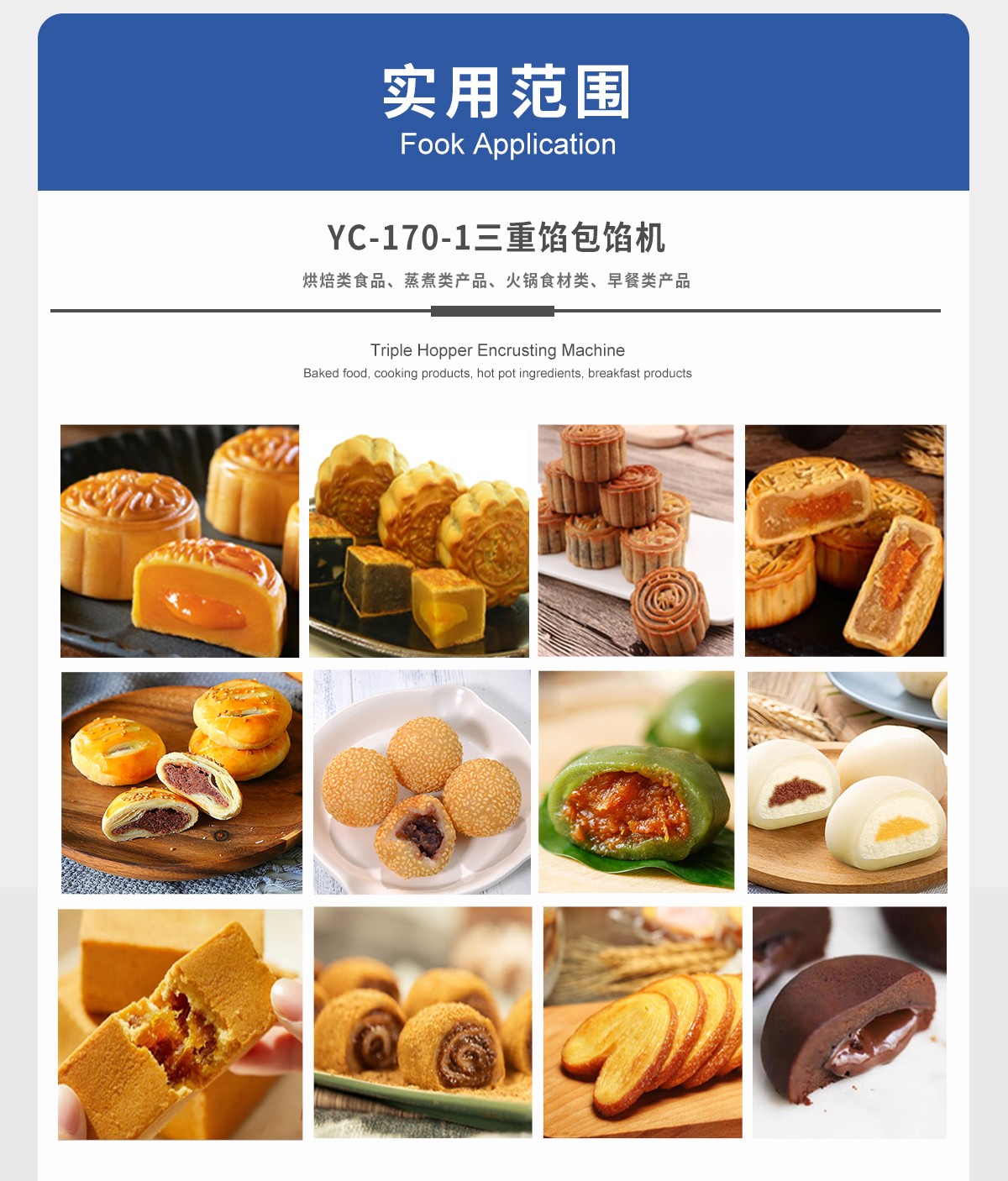 可適用于:烘焙類食品、煮類產(chǎn)品、魚漿類食品等